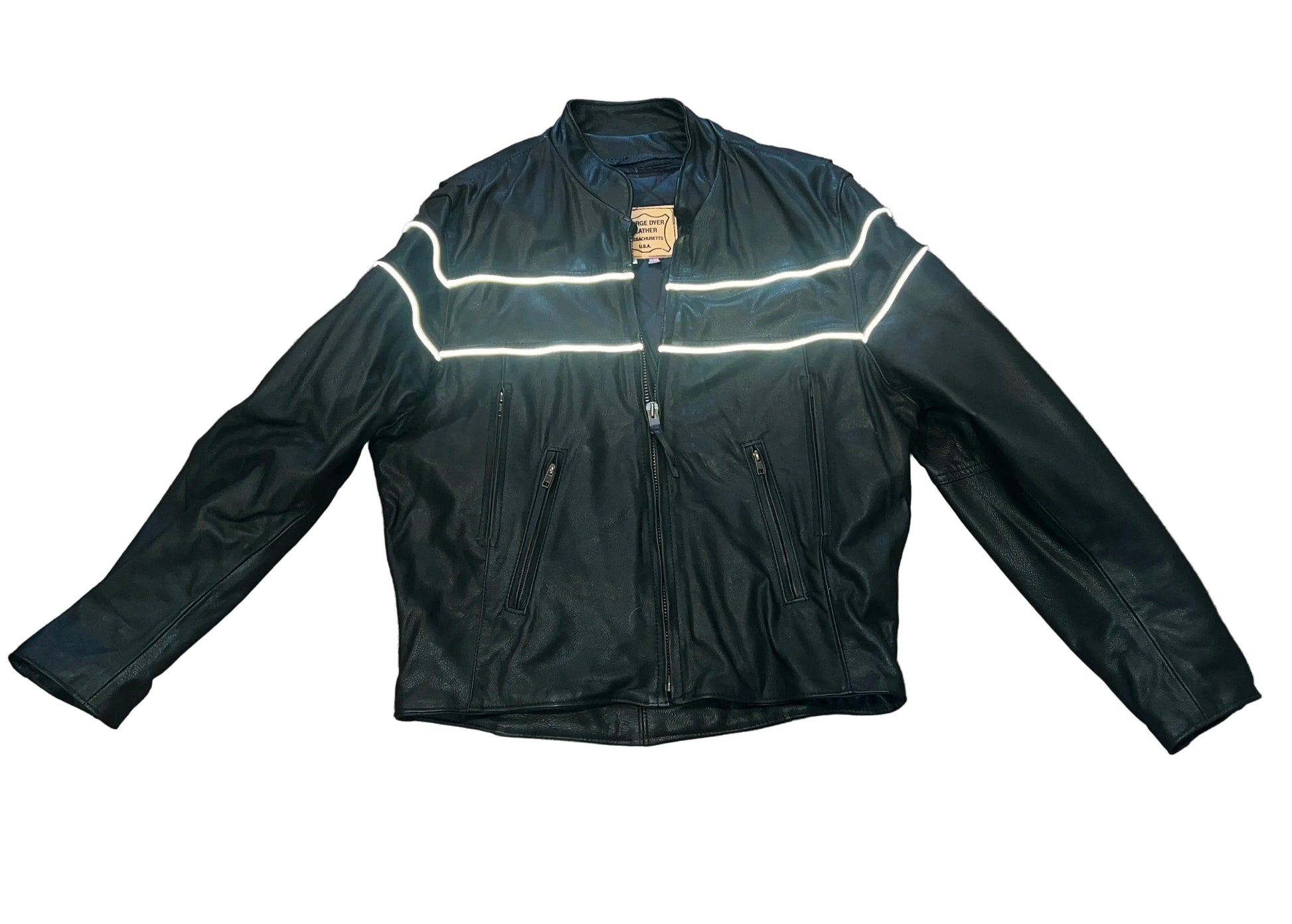 Take advantage of this must-have night time riding gear crafted from soft and durable 3-3.5 oz cowhide with refletive piiping